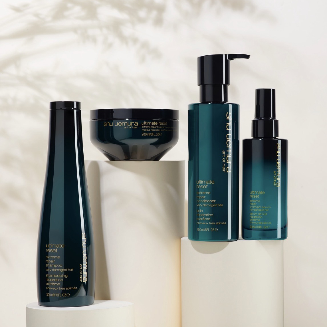 Pensée pour les cheveux extrêmement sensibilisés, la gamme Ultime Réinitialisation répare et renforce la fibre capillaire de l’intérieur.